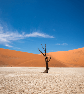 Wildlife thrives in the silence and stillness of Namibia's surreal desert landscape.